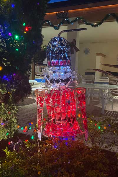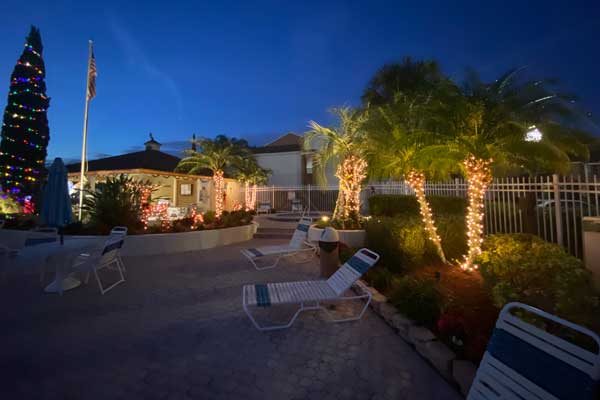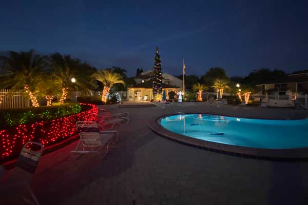It’s the season! The holiday lights are back around the pool area, front entrance, gazebo and park. All the lights look spectacular this year. Be sure to check out the photos. A special thank you to all the volunteers who helped with installing the lights, wreaths and lawn decor: Jeanie Childress and Nevin Jackson, John Gardner, Donna and Jerry Milbauer, Linda and Tom Holmes, Charlie Hessler, Barry Litka, Bev and Lee Sterner, Tom and Barbara Nixon, Tim Cole, Randy Moreland and Tom Rawson. Everything looks wonderful, thank you for your hard work!